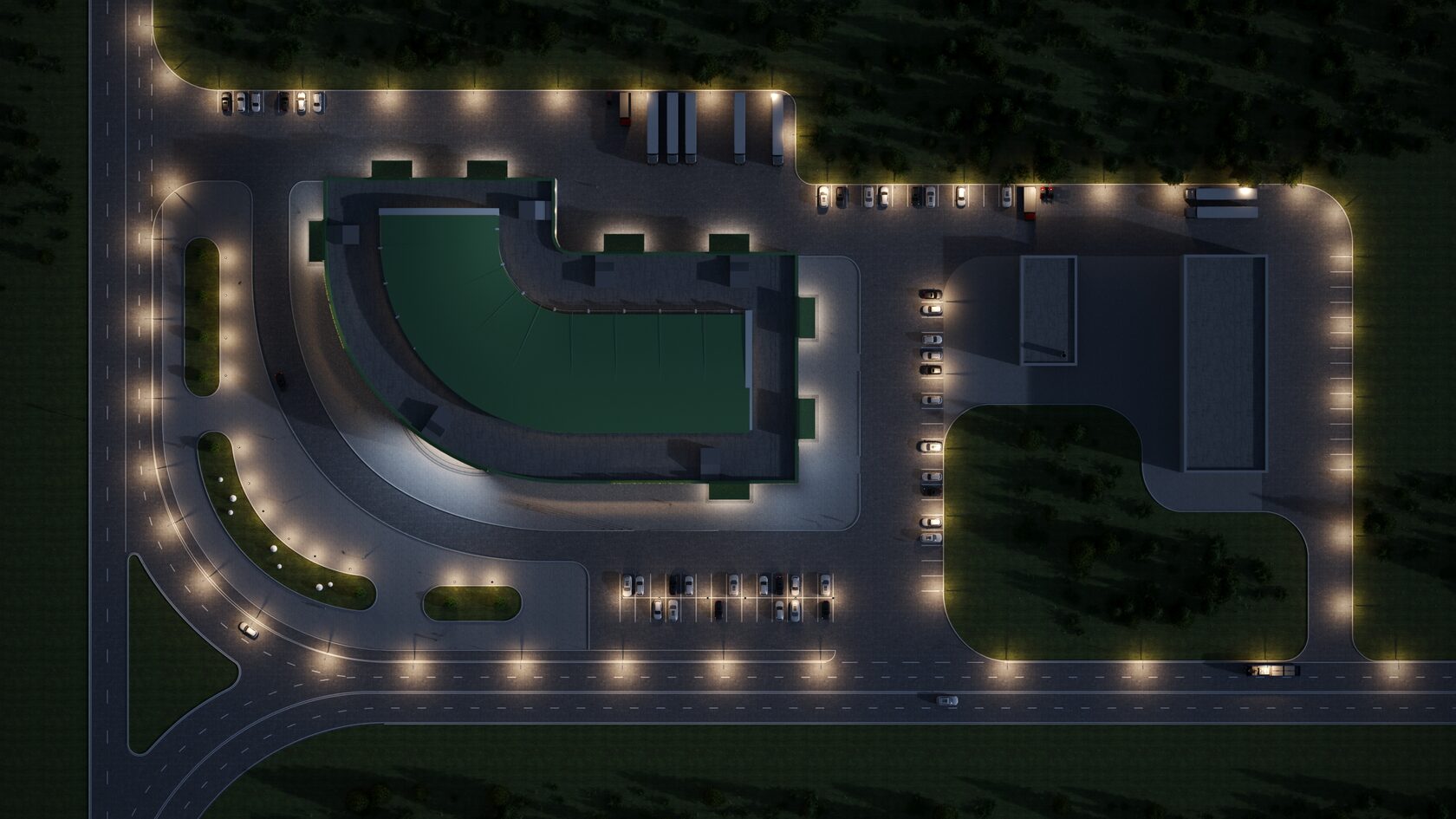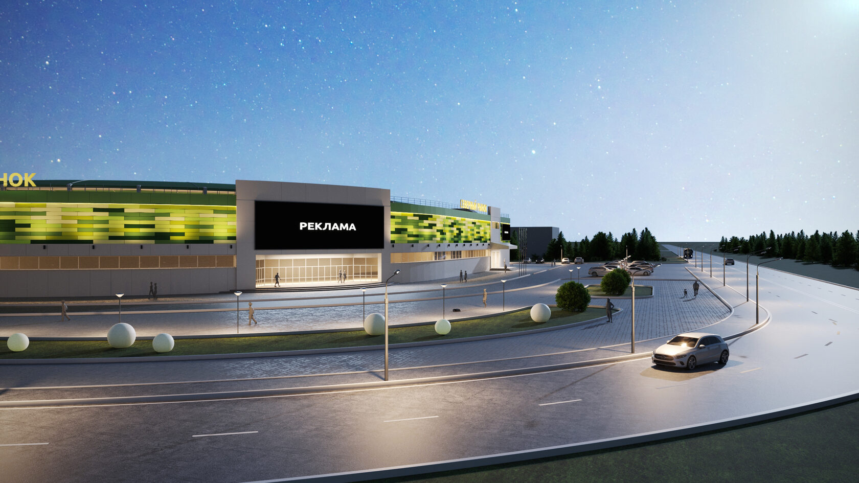 3D visualization of the exterior of the shopping center